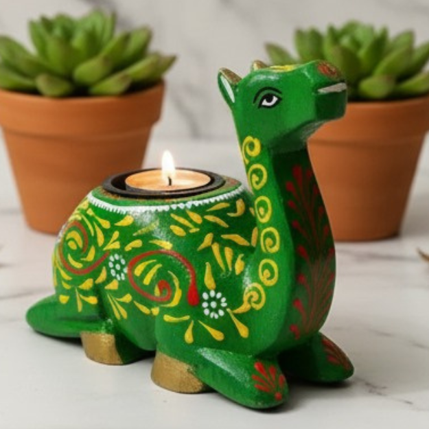 Handcrafted Green Camel Tea-Light Candle Holder – Sanvi Craft
