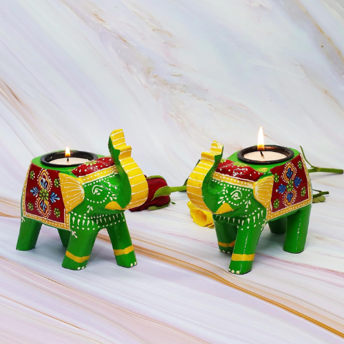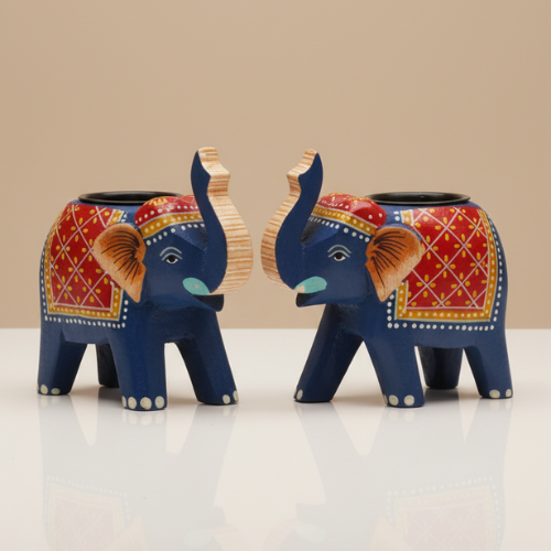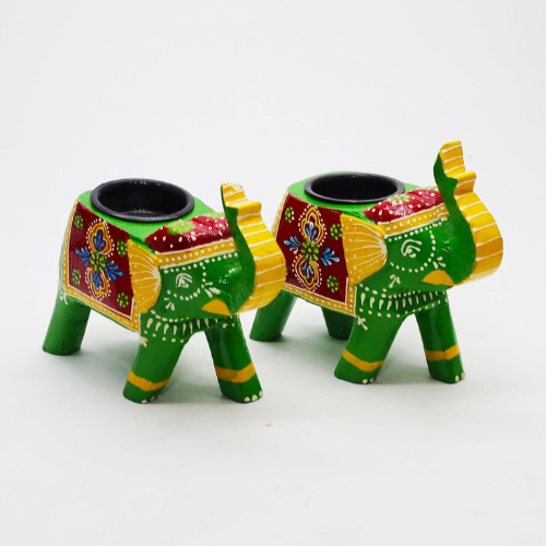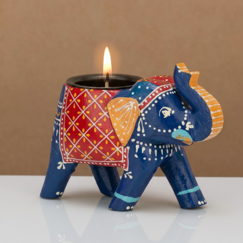 Wooden Elephant Tealight Candle Holder – Handcrafted by Sanvi Craft