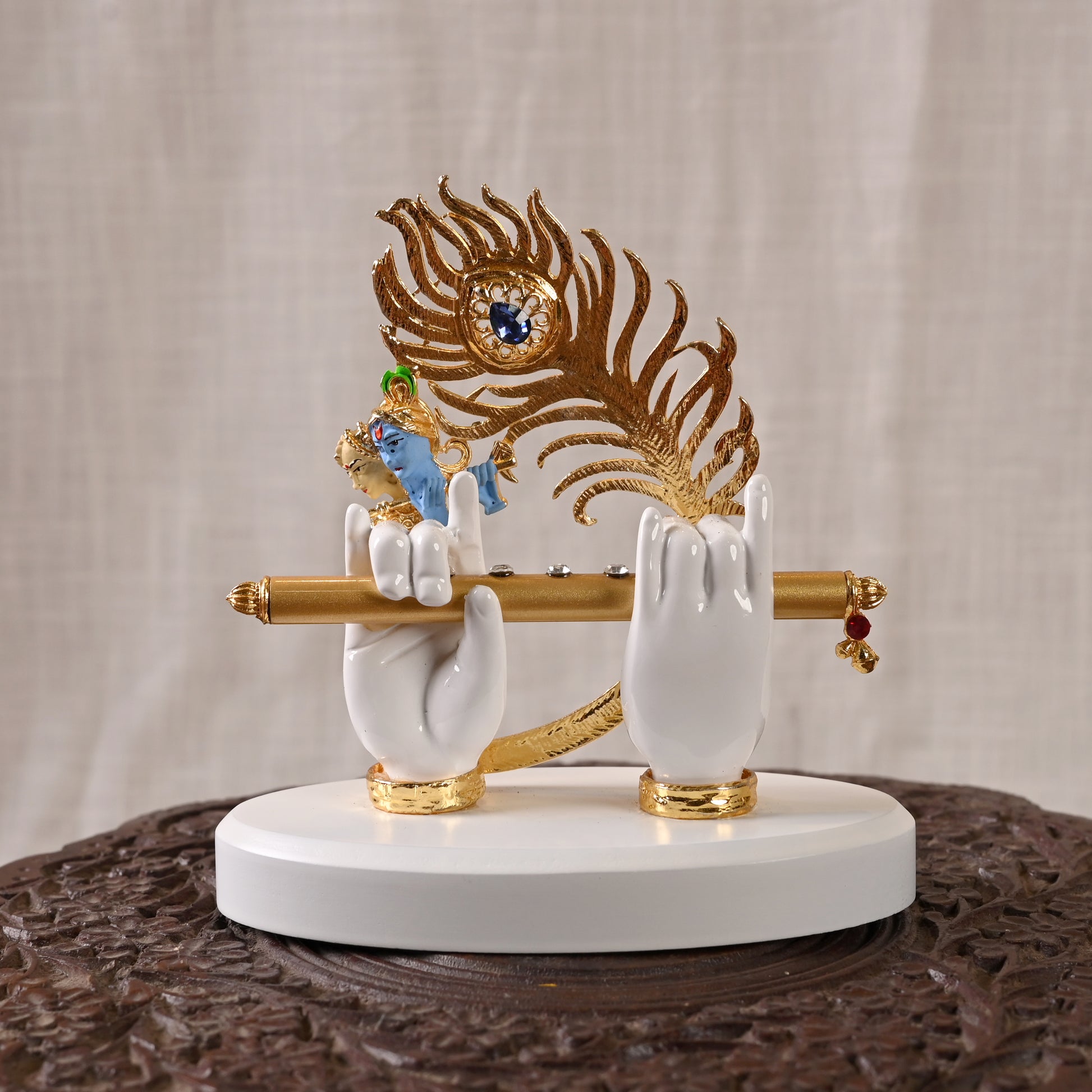 White Krishna Hand with Krishna Face Showpiece (17* 17 * 10)
