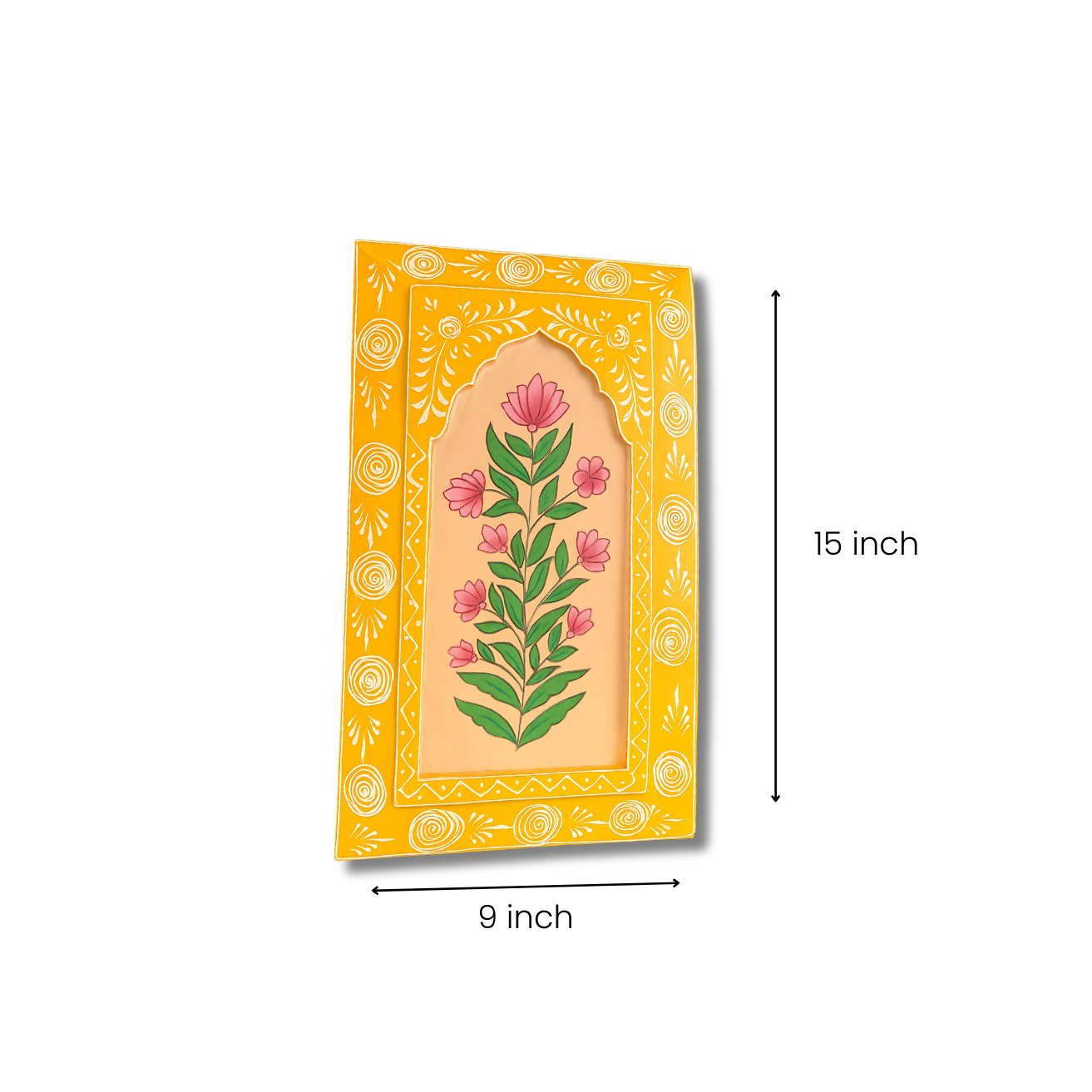 Bring warmth and positivity to your space with our Yellow Handpainted Wooden Wall Frame! Showcasing a blooming pink floral design, this lively piece adds a cheerful and traditional vibe to your walls.