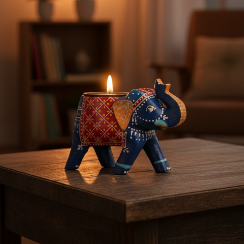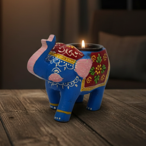 Wooden Elephant Tealight Candle Holder – Handcrafted by Sanvi Craft